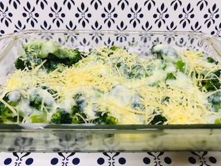 Mezclar la salsa blanca con el queso blanco y exparcir sobre el brocoli.