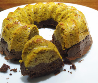 A la mitad de la mezcla que queda agregar el cacao, incorporar bien y volcar en la budinera.