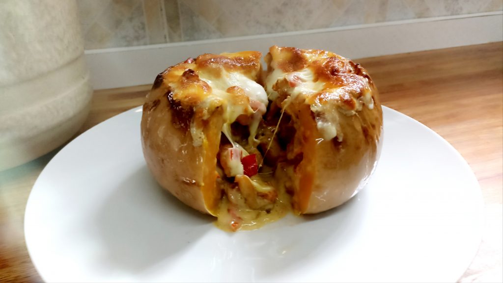 Cuando ya este pronta la calabaza rellenar con la mezcla.