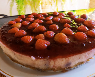 Realizar la crema chantilly segun indica el envase, agregar batiendo el queso blanco, el licuado de frutillas y por último la gelatina disuleta en un poquito de agua caliente.