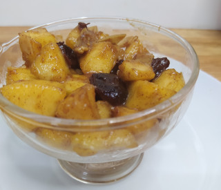 Cuando empieze a ablandar la manzana incorporar los demas ingredientes (los orejones y las nueces se deben picar previamente.)