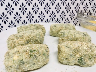 Una vez fría la masa par las croquetas, tomamos una porción y le colocamos el bastón de queso dentro, cerramos y pasamos por el rebozador.