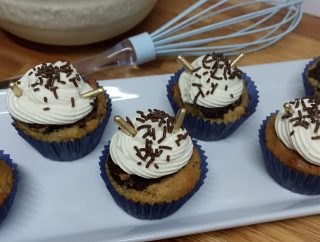 Con la ayuda de una manga inyectar la pasta de chocolate en el centro de los cupcakes.