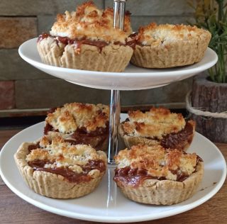 Se puede hacer una tarta grande de 20 cm. de diametro o 12 tartitas individuales usando moldes de cupcakes.