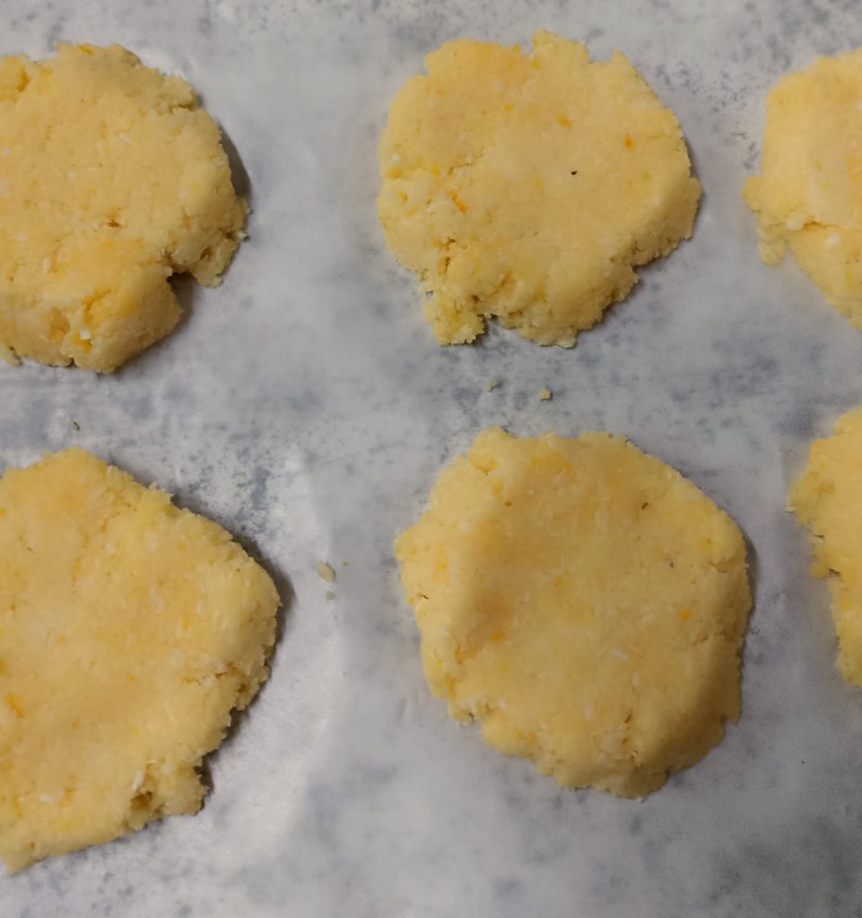 Con la ayuda de una cuchara grande colocar la mezcla en un molde forrado con papel manteca formando las galletitas.