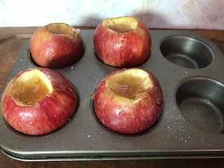 Limpiar las manzanas, colocarles el edulcorante y la canela.
