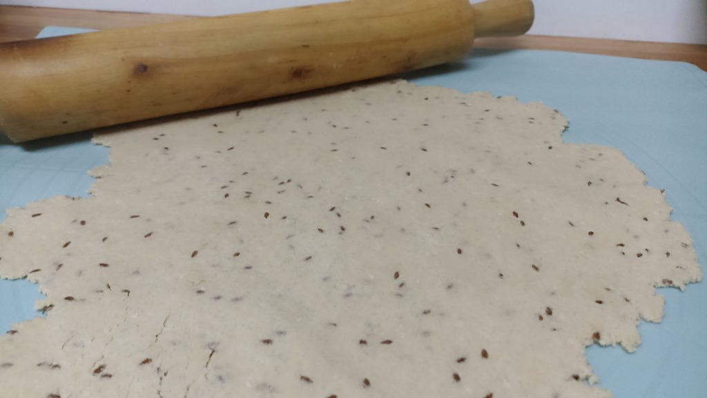 Estirar la masa sobre una mesada espolvoreada con fécula o harina de avena. Una buena opción son las placas de silicona para estirar masas.