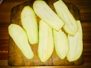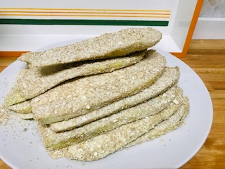 Pasar las berenjenas por huevo y luego el pan rallado.