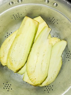 Colocar en un colador con sal fina por al menos 15 minutos para que largue el amargor.