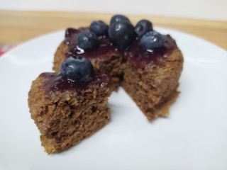 Un vez frío desmoldar y decorar con mermelada de arándanos o de tu preferencia y alguna fruta.