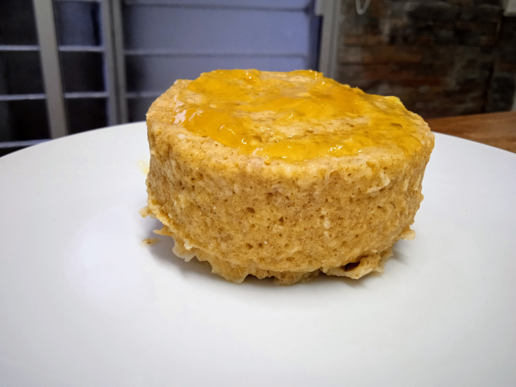 Agregar el resto de los ingredientes, mezclar bien y colocar en una taza o molde apto para microondas.