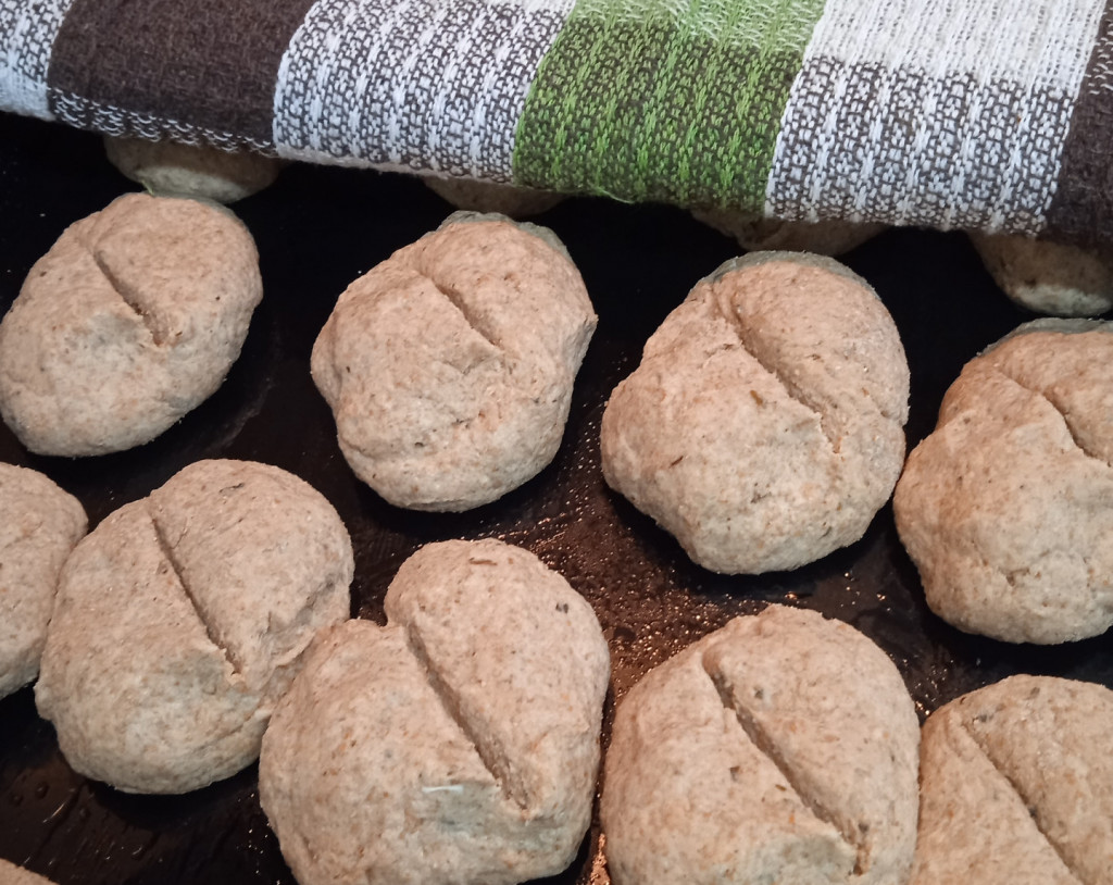 Encender el horno y formar los pancitos. Colocar en una asadera aceitada y dejar leudar 30 minutos más.