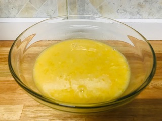 Colocar en un molde la fécula de maíz y el azúcar, disolver con el jugo de naranjas y agregar el vinagre y la salsa de soya.