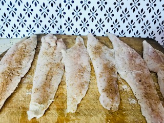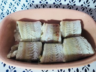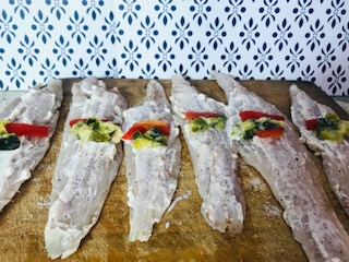 Distribuir sobre los filete el morrón cortado en tiritas y el puerro