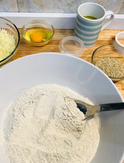 Mezclar el huevo, el aceite y la leche, agregar a la mezcla anterior y unir bien.