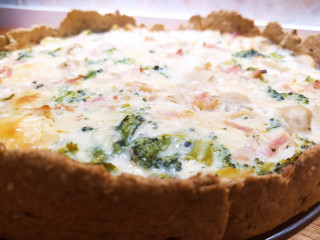 Por último incorporar el brócoli, el jamón picado y los champiñones salteados.