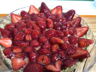 Para armar colocar la base, luego la crema y por último acomodar las frutillas.