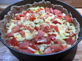 Picar los tomates y el queso en cubitos, mezclar con los champiñones.
