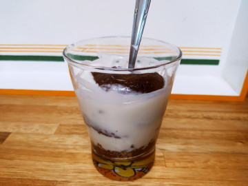 En un vaso armar intercalando capas de biscochuelo y el yogurt al cual previamente le habré agregado la vainilla.